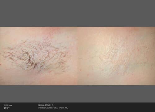 Hair follicles are continually cycling through three phases: anagen or growth phase, catagen or transitional phase, and telogen or resting phase. Hair is most susceptible to this treatment while in the anagen phase. Because of this timing, it’s not possible for any laser treatment to achieve 100% hair removal, but it is possible to significantly reduce the number of growing hairs by as much as 85%. Multiple treatments can be administered for maximum results.